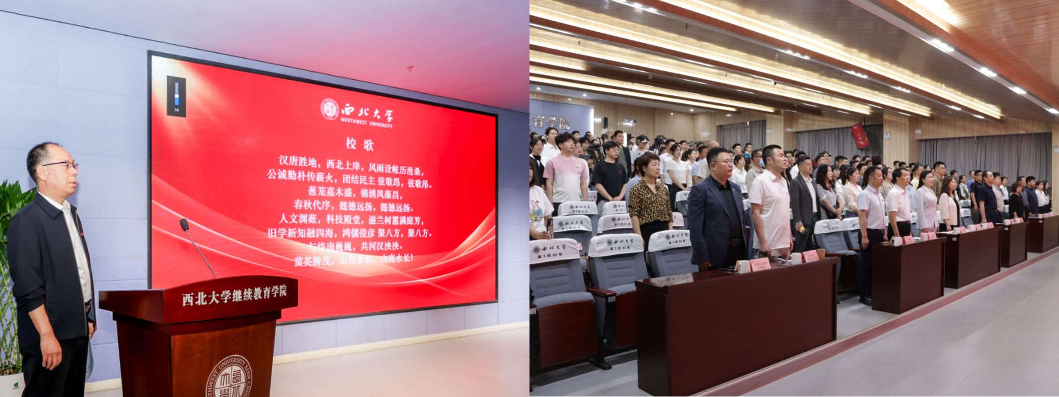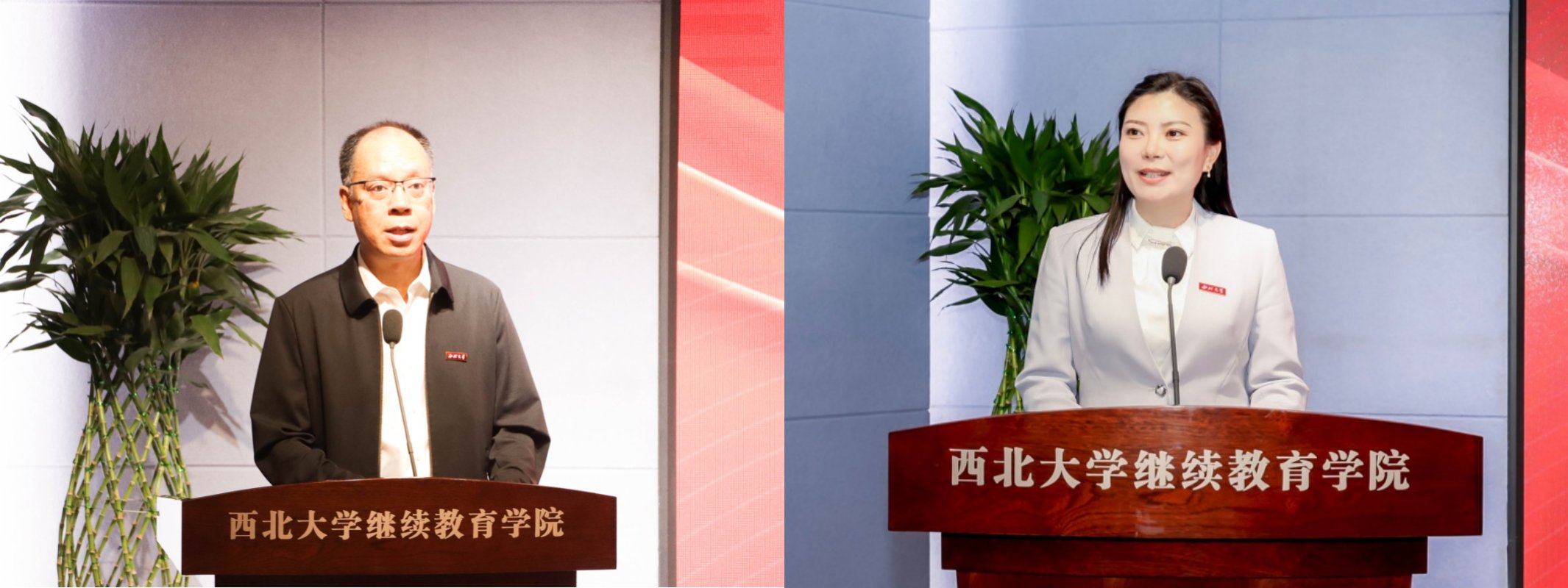 曹蓉在致辞中指出,西北大学为办好继续教育进行机构改革,深度挖掘资源,全面提升师资力量,优化软硬件环境,组建成立了新的继续教育学院。她希望,作为新继续教育学院成立后的第一批学历继续教育学生,能够坚定信念,锚定目标;主动拥抱智能时代,提升终身学习能力;勇担使命,厚植家国情怀。牢牢把握机遇,充分利用学院优质资源,在求知的道路上奋勇前行,为个人梦想拼搏,为社会发展助力,携手为教育强国建设与民族复兴伟业贡献力量!