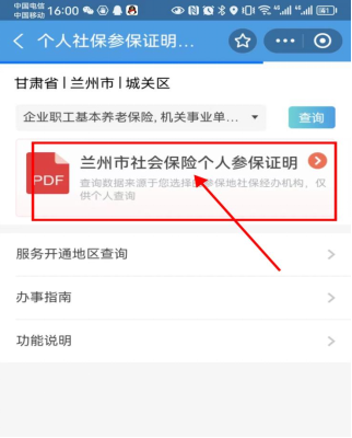 五、点击【兰州社会保险个人参保证明】;