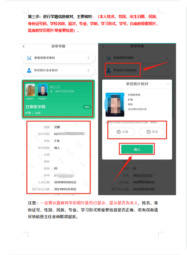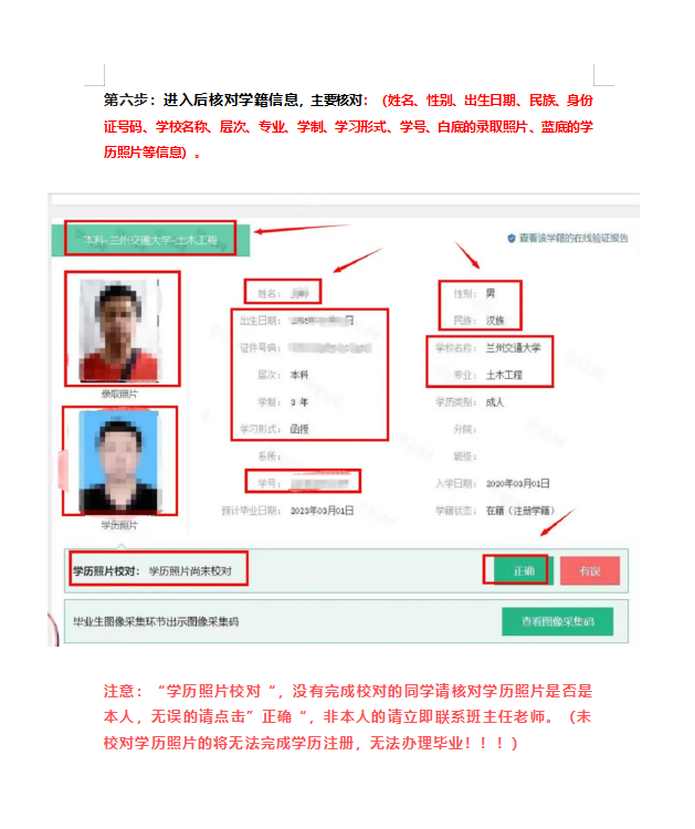 注:之前有反馈学历照片比对“身份核验不确定/身份核验未通过”的学生请先联系班主任老师更换学历照片,等院校比对通过了再进行校对。此部分学生请等候联系。
