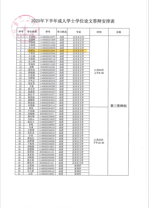 答辩安排表见附件(名单已标黄)