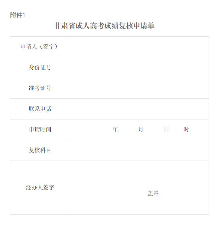 1.甘肃省成人高考成绩复核申请表