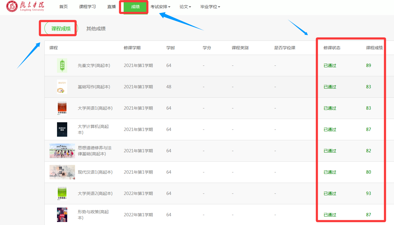 【学院资讯】陇东学院21级高升本所有学期课程总成绩查询及未通过课程毕业补考通知