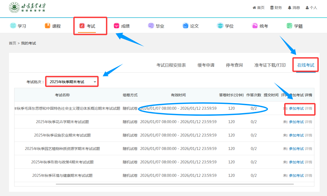 【学院资讯】甘肃农业大学2025秋季学期期末考试通知