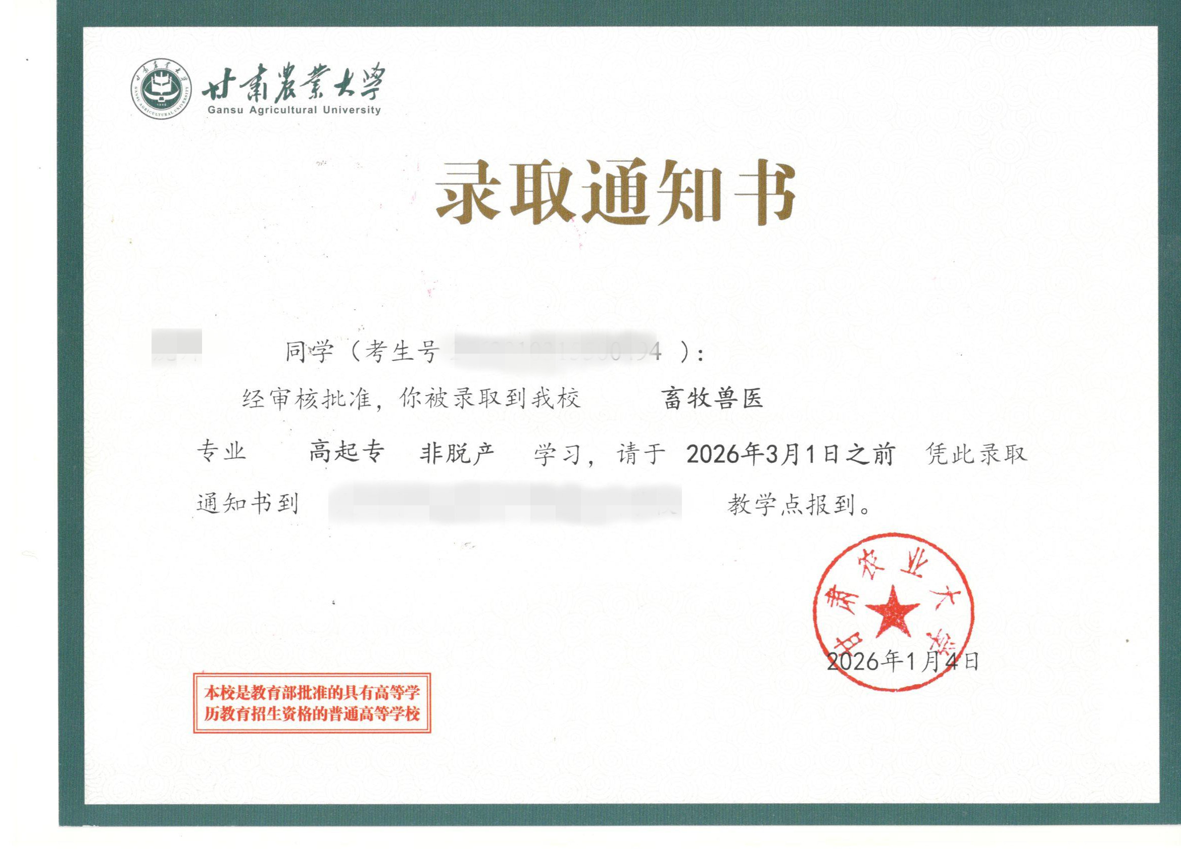 【喜报】甘肃农业大学录取通知书来啦