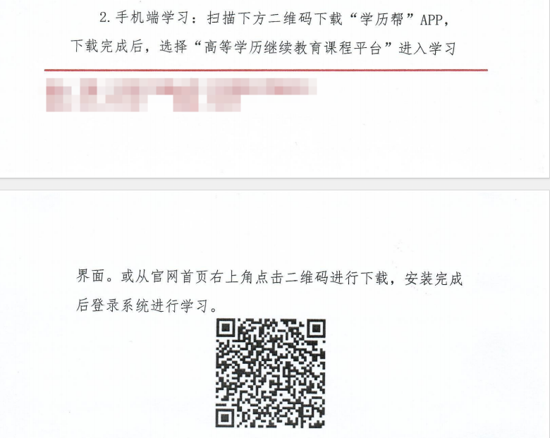 2、手机端:扫描下方二维码下载APP“学历帮”,选择学校:高等学历继续教育课程平台。 苹果手机暂不能下载APP。