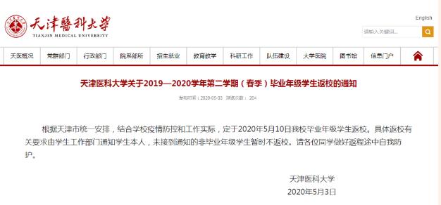 5月10日我校毕业年级学生返校。具体返校有关要求由学生工作部门通知学生本人,未接到通知的非毕业年级学生暂时不返校。