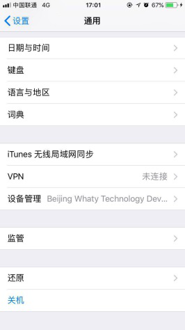 操作流程:设置——>通用——>设备管理——>点击Beijng Whaty Technology Development