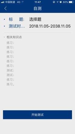 点击我的自测,即可在线进行答题。如下图所示。