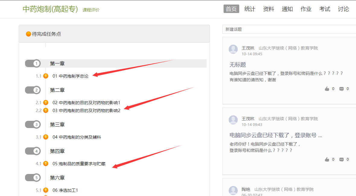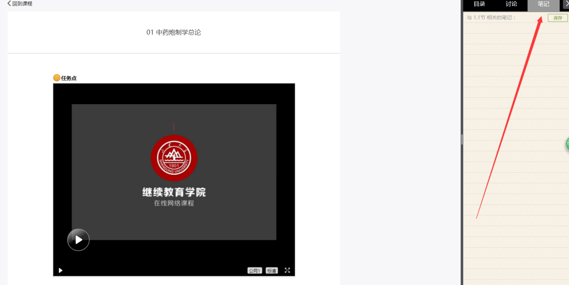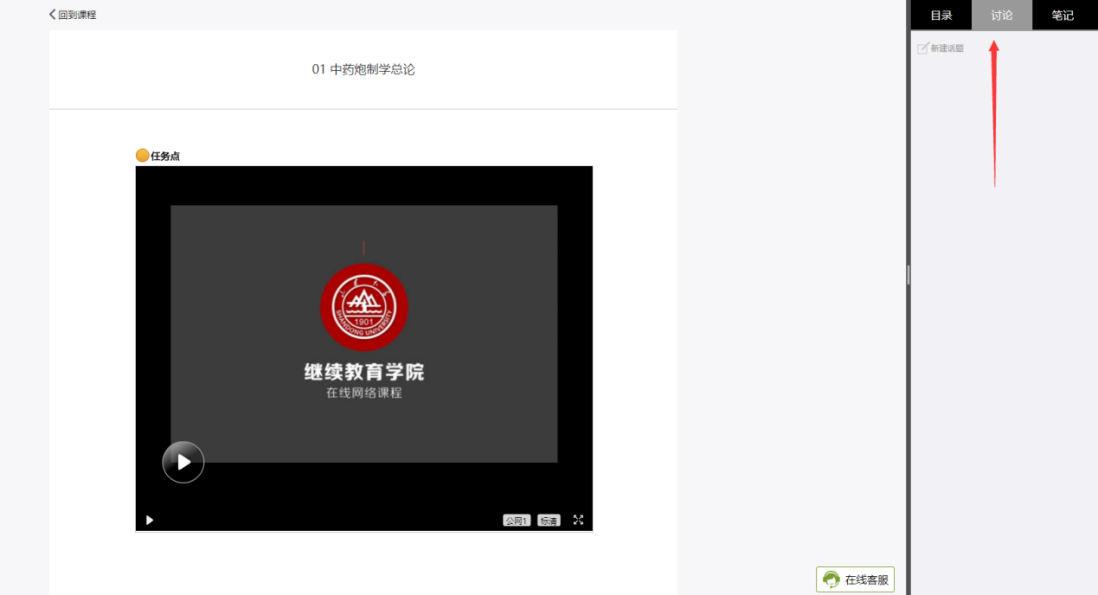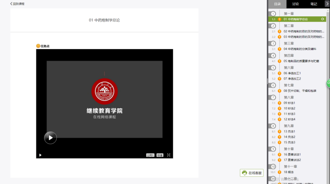 B、进入课程学习后,学习页面如下图所示。右侧是章节目录,其中进度点显示为橙色并带有数字提示,表示还有相应的任务点未完成,完成则显示为绿色。