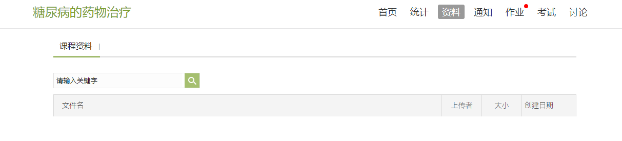 课程资料界面如下,这是一个师生共享的平台,同学们可以本地上传资料与同学共享,可查看老师和同学上传的课程的资料,资料较多难以查阅时也可以进行关键词检索。