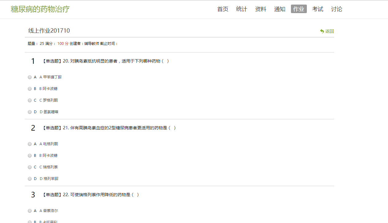 D、空间中还包括了统计,资料,作业,考试和讨论功能。在界面右侧,同学们可以参与讨论,查看通知,查看同学,下面分别进行介绍。