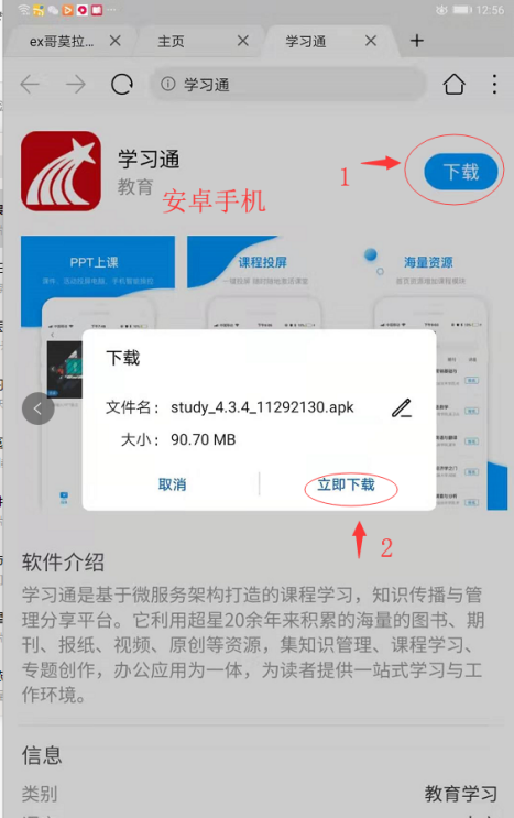 苹果手机会进入appstore的界面如下,点安装就可以,安卓手机会打开一个浏览器,直接进入下载界面点“立即下载”。
