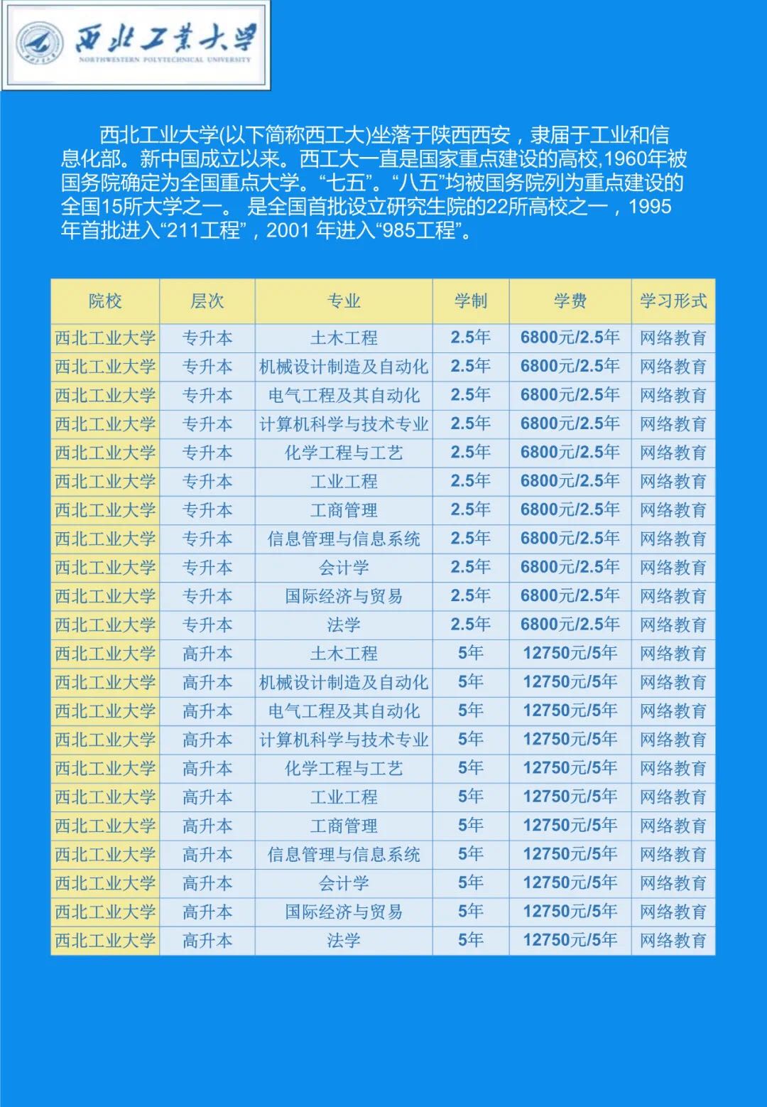 西北工业大学成人高等教育始于1956年,1986年成立西北工业大学继续教育学院。2001年经教育部批准学校成为全国68所开展现代远程教育试点高校之一,2001年6月成立西北工业大学网络教育学院。
