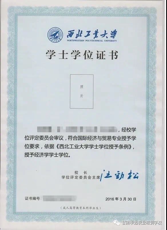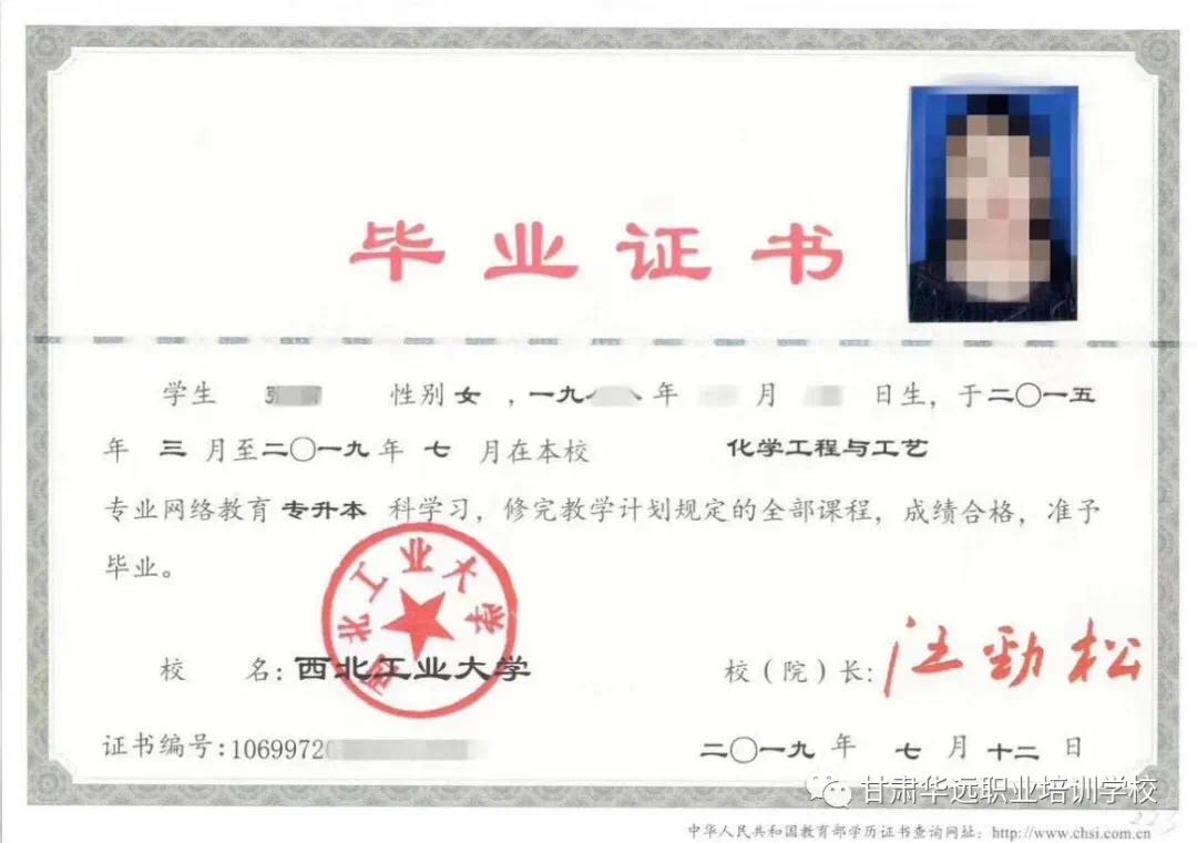 学生在规定的学习期限内,完成教学计划规定的课程,修满学分,其中,本科层次要求通过教育部组织的网络教育2-3门公共基础课全国统一考试,经毕业资格审查合格,准予毕业,由西北工业大学颁发国家承认的毕业证书(加注“网络教育”字样),并按照教育部规定进行电子注册,国家承认学历,学信网备案可查询。符合西北工业大学成人高等教育学士学位授予条件的本科毕业生,可申请授予成人高等教育学士学位。