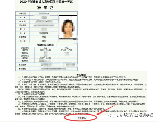 各位同学,成考准考证于明日(2020年10月21日)开始打印,温馨提示:
