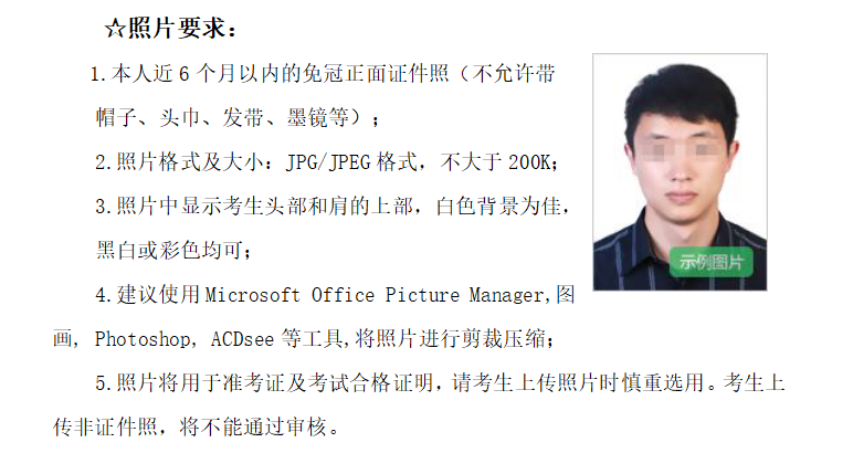 5.所有考生笔试报名前需要重新进行注册、填报个人信息并上传个人照片,重新注册操作不影响考生已获得的成绩。注册上传照片将用于准考证和考试合格证明,请考生上传照片时遵守规范、慎重选用。