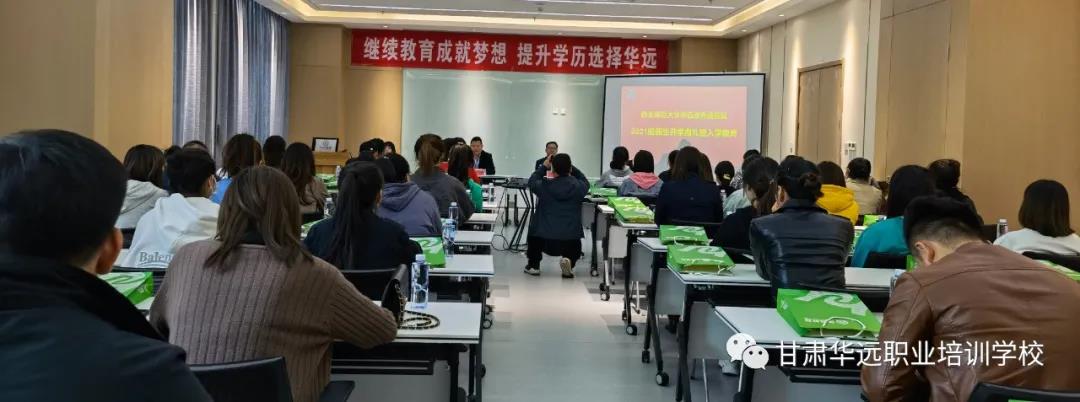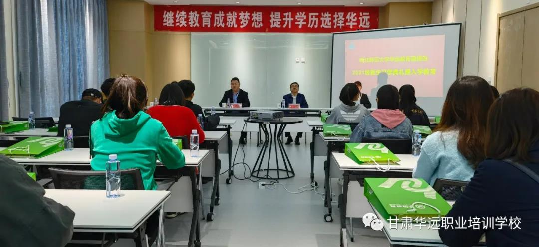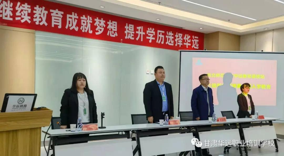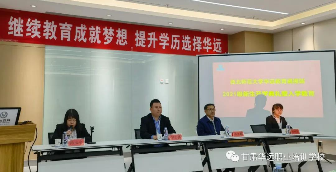2021年4月17日,西北师范大学华远教育教学点2021级新生开学典礼暨入学教育在华远教育三楼会议室召开,本次会议采取线上线下的方式进行。
