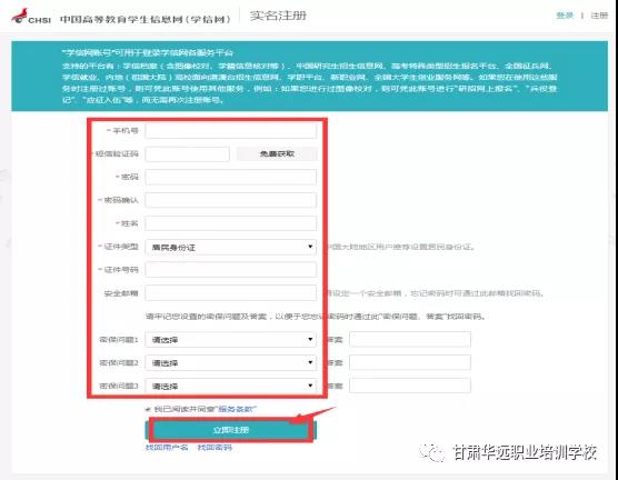 点击“注册”填写相关信息后点击“立即注册”,注册成功后点击“登录”。(已有账号者请忽略此步骤)