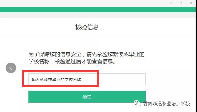 第五步:初次登录需要输入“就读院校或毕业的学校名称”进行验证