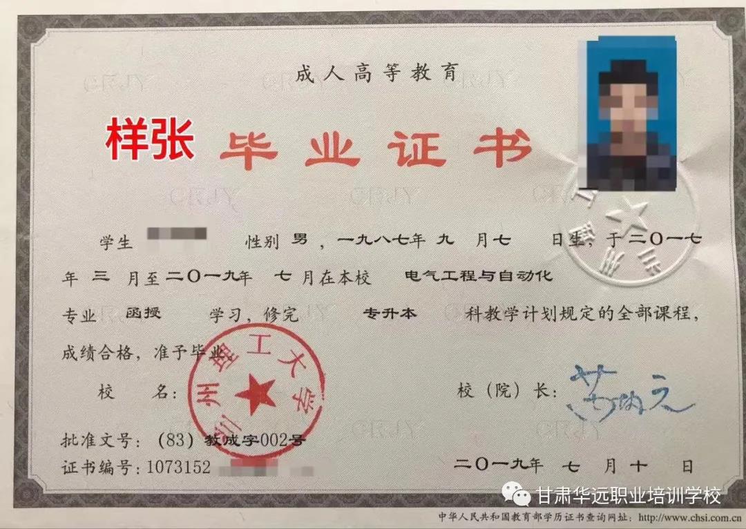 学生按教学计划完成规定课程的学习,考试成绩合格,颁发教育部统一印制的兰州理工大学成人高等教育本(专)科毕业证书(实行国家电子注册),国家承认其学历。