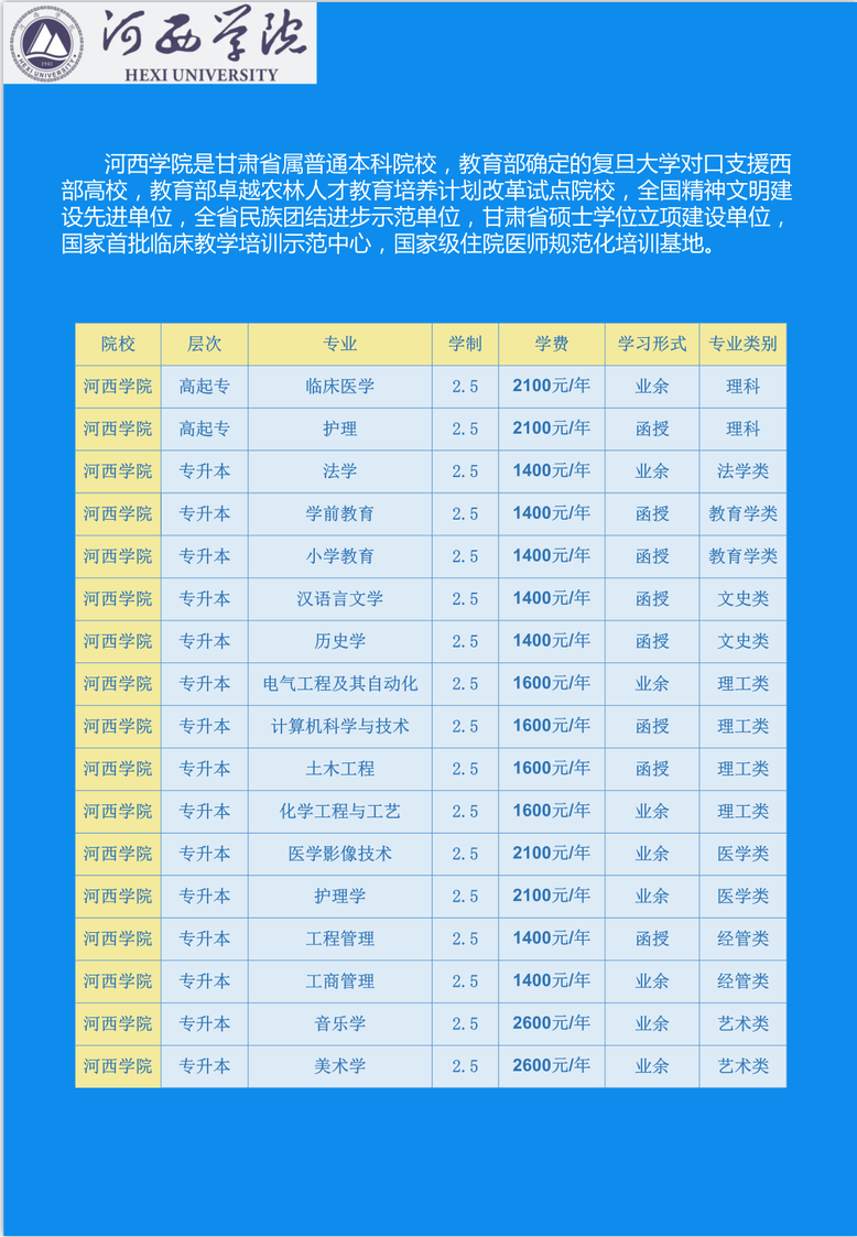 【华远要闻】河西学院2021年成人高等教育招生简章