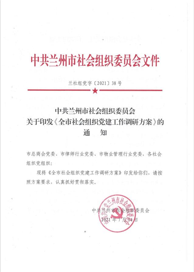根据中共兰州市社会组织委员会《关于印发〈全市社会组织党建工作调研方案〉的通知》的相关要求。