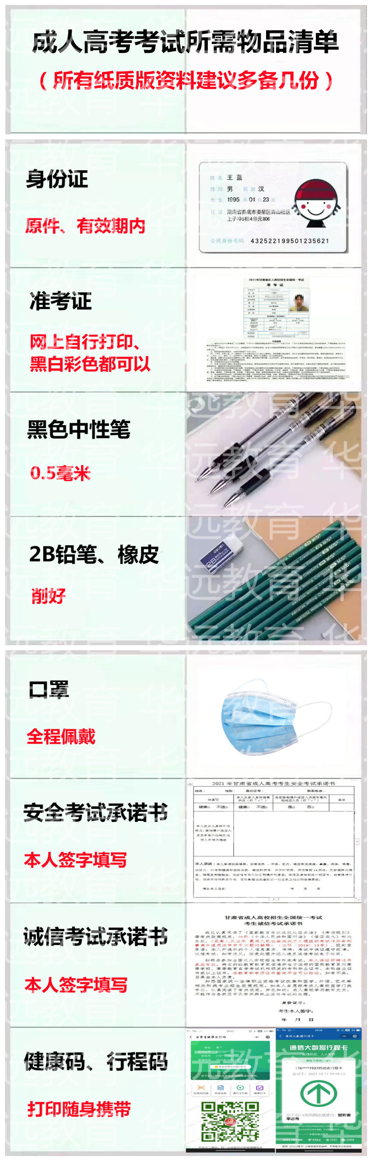 2. 首场考试须提供《2021年甘肃省成人高考考生安全考试承诺书》,并签字确认;