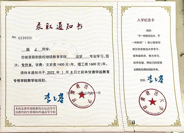 【华远要闻】甘肃政法大学录取通知书来啦