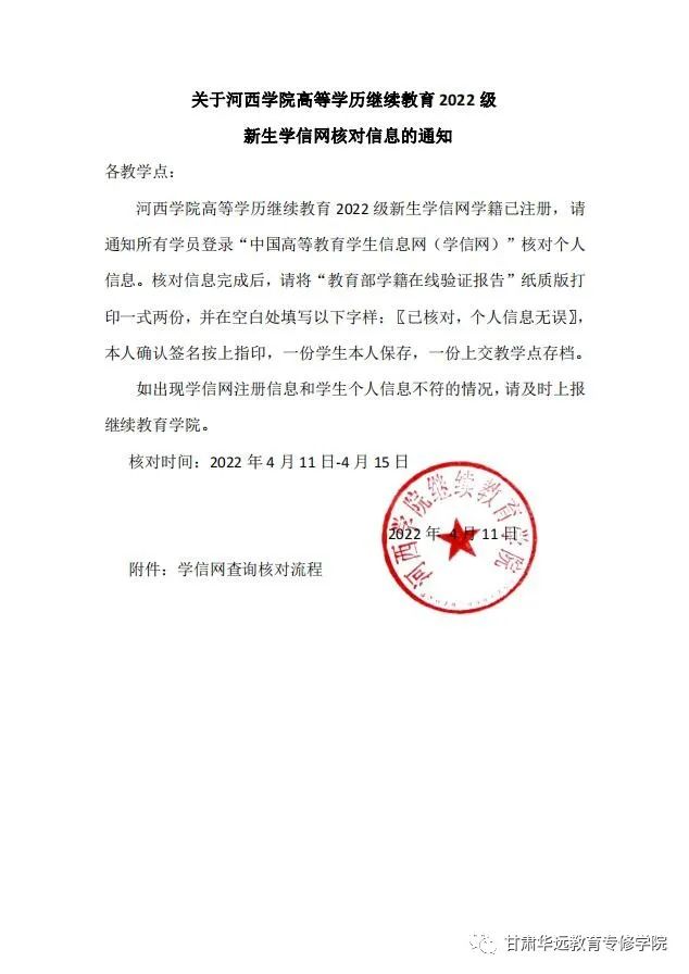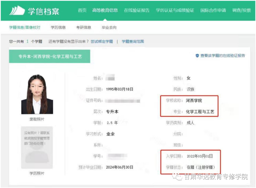 【华远要闻】河西学院新生学信网学籍查询开始了!