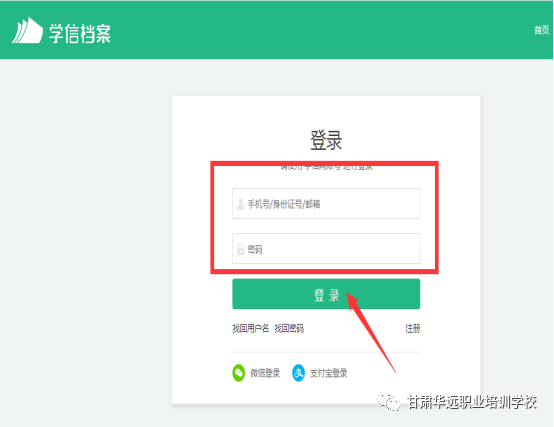 2. 已有账号或注册成功者,点击“登录”后点击“登录学信档案”