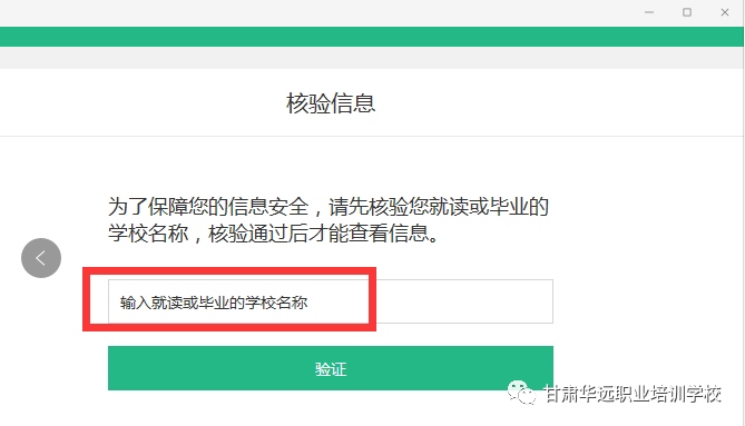 第五步:初次登录需要输入“就读院校或毕业的学校名称”进行验证(输入兰州工业学院)