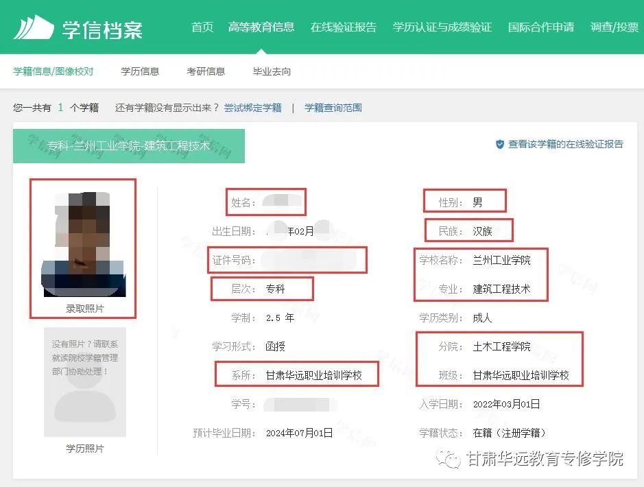 【华远要闻】兰州工业学院新生学信网学籍查询开始了!