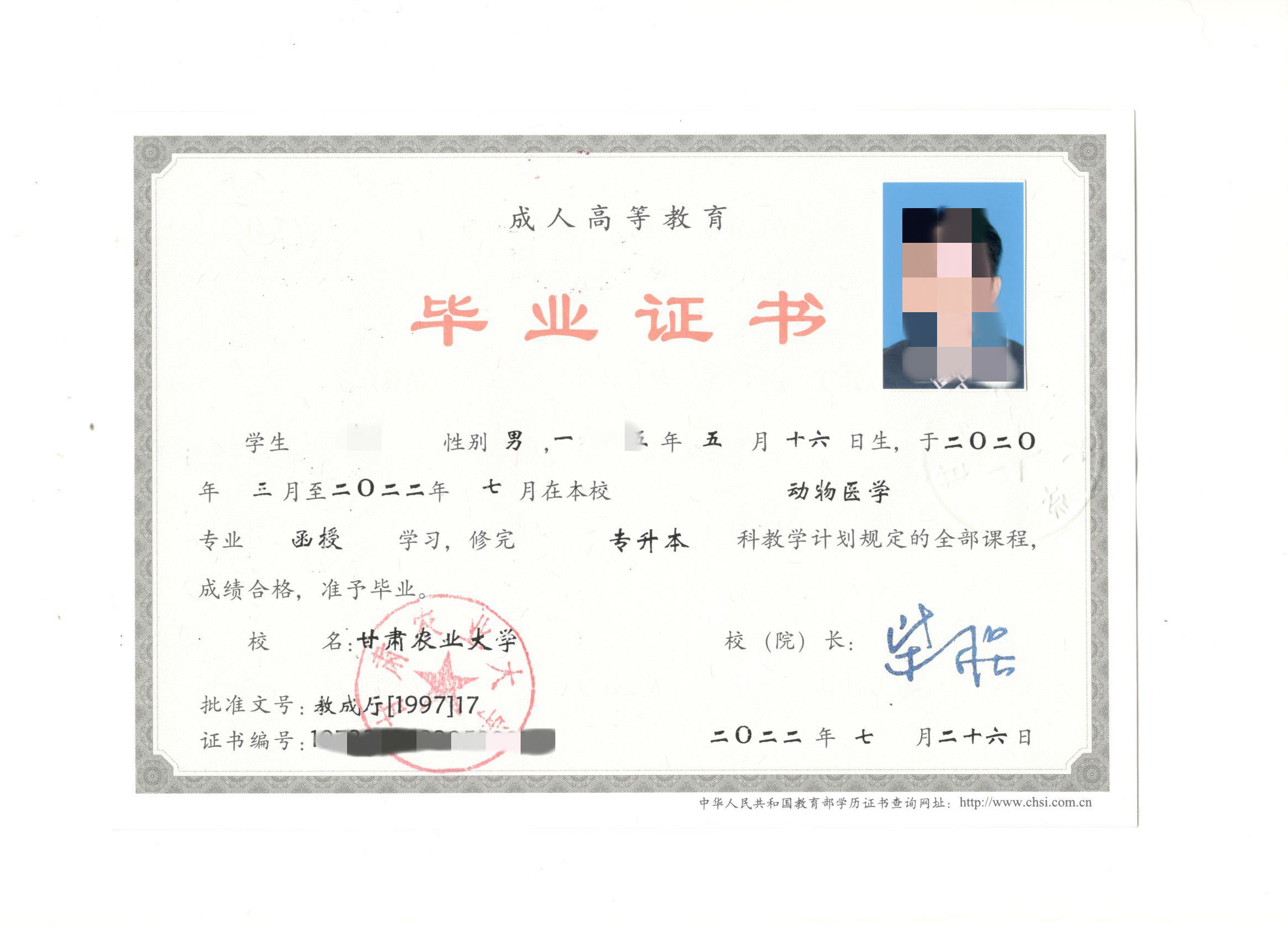 【喜报】甘肃农业大学2020级2.5年制专业成人教育毕业证书领取通知!