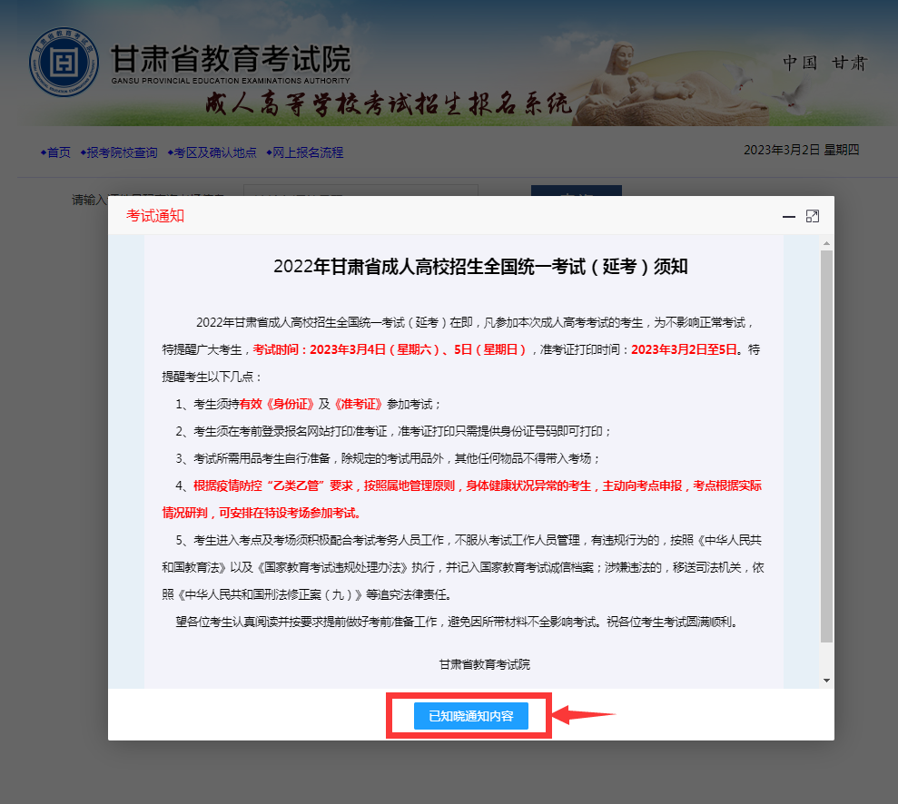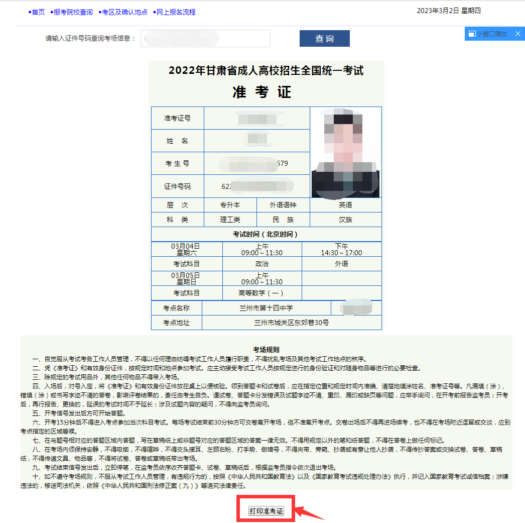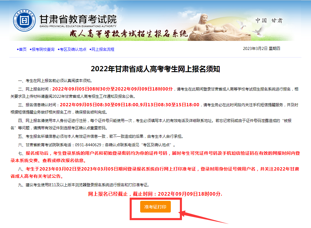 【华远要闻】2022年甘肃省成人高考(延考)考生准考证打印操作指南