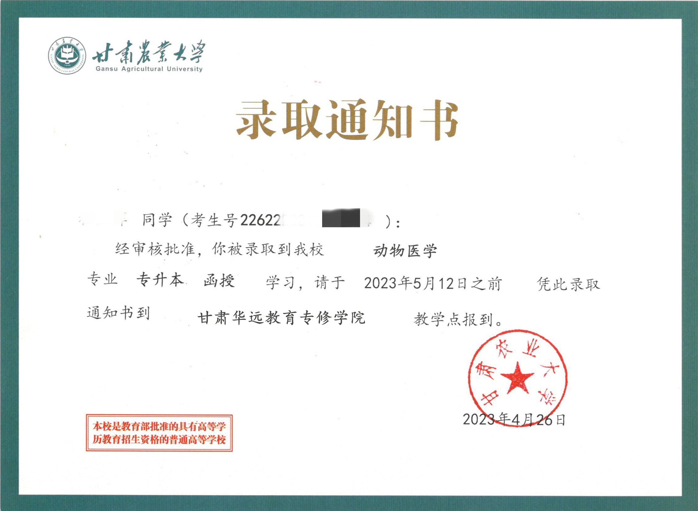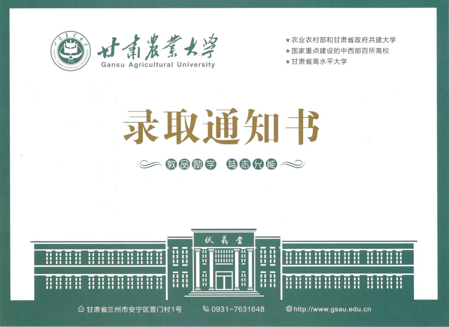 首先恭喜已经被录取的同学,祝贺你们被甘肃农业大学录取,请大家按照要求报到入学。