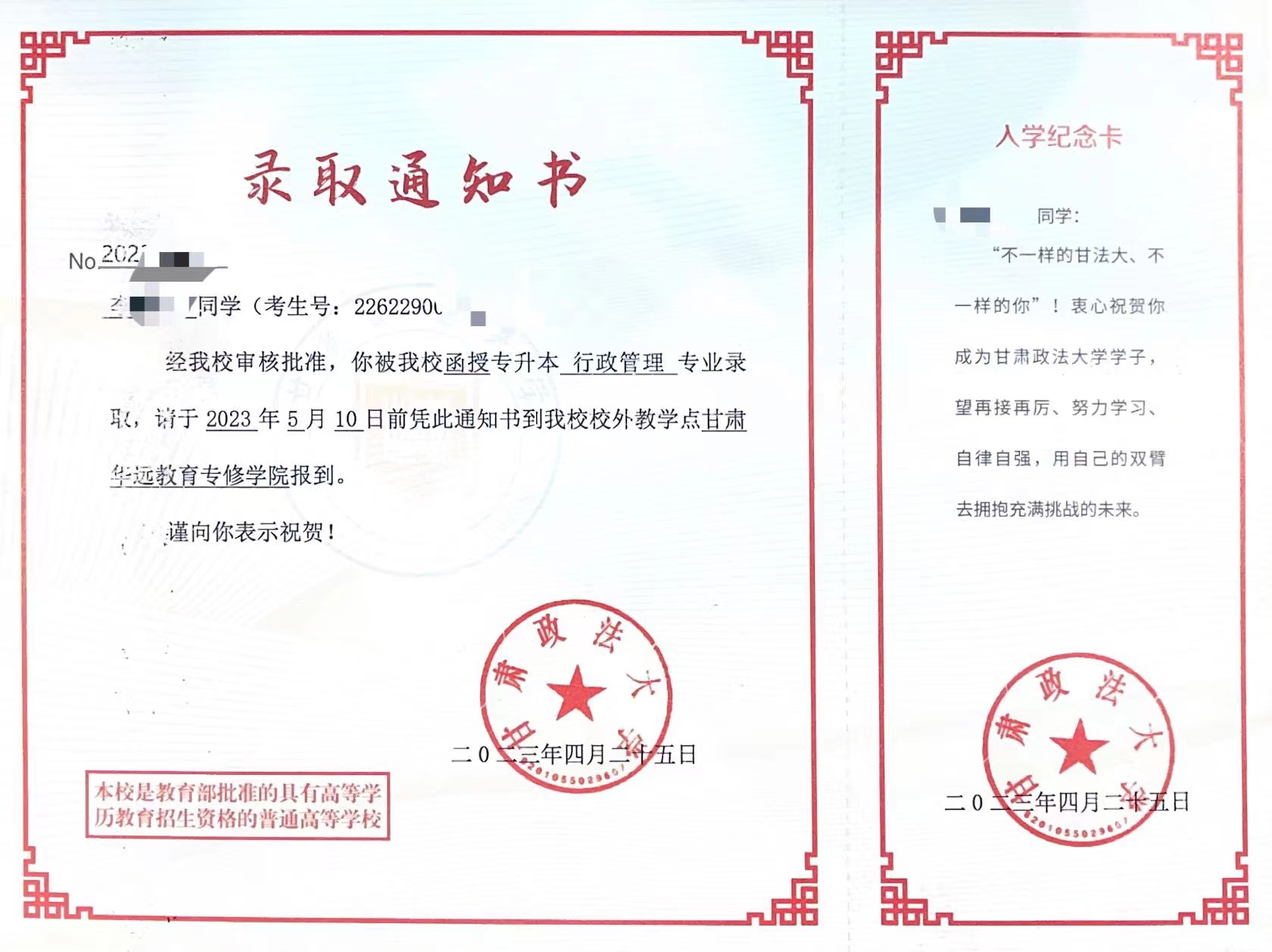 甘肃政法大学录取通知书来啦