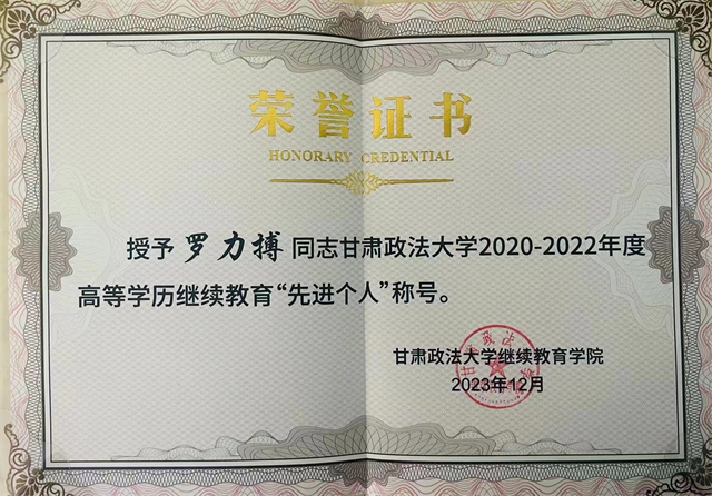 党委宣传部部长何瑞林宣读了《关于表彰甘肃政法大学2020-2022年度高等学历继续教育“优秀教学点”和“先进个人”的决定》,与会领导为“优秀教学点”和“先进个人”代表颁发荣誉证书。甘肃华远教育专修学院院长罗力搏被评为“先进个人”。随后,优秀教学点代表进行了交流发言。