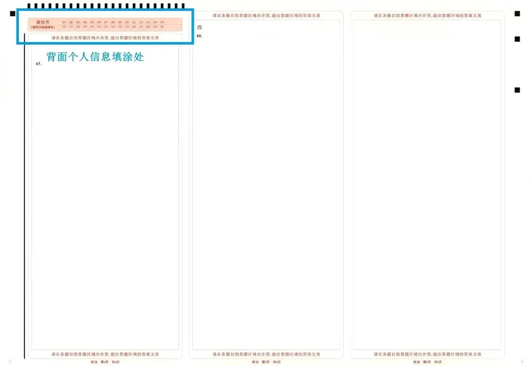以专科起点答题卡为例,依次为:标题及考生信息填写区——选择题答题区——非选择题答题区——座位号填涂区。