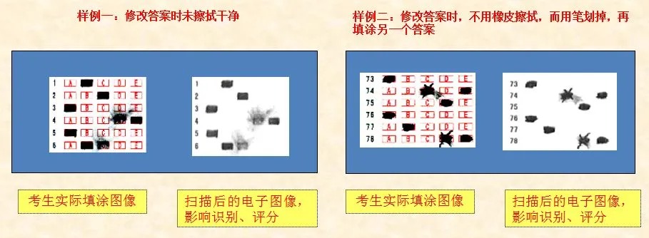如果某选项被墨水等物质沾污,会影响计算机识别、评分。