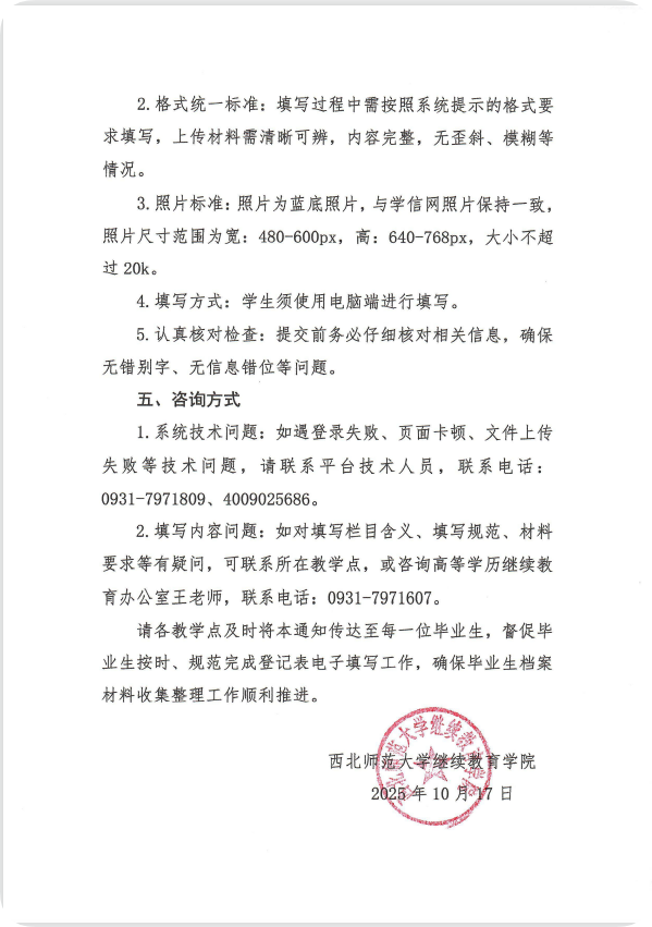 大家好,接西北师范大学通知,为进一步规范毕业生登记表填写工作,确保信息准确、完整与规范,现将电子填写相关事宜通知如下:
