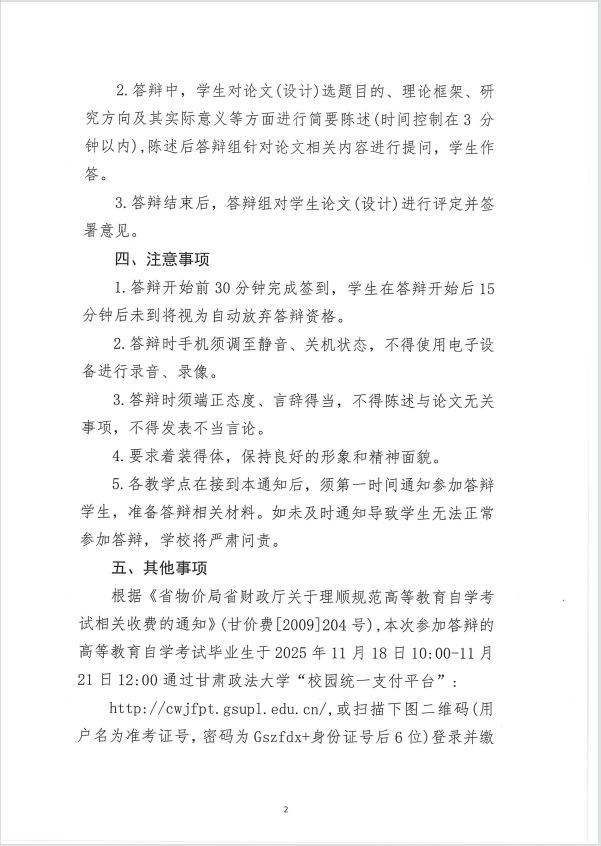 注意:本次参加答辩的函授学生不需要缴纳答辩费,请知悉。