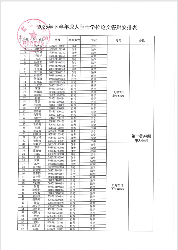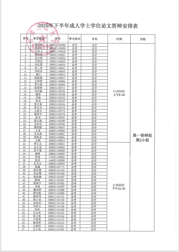 大家好,接甘肃政法大学通知,根据《甘肃政法大学成人高等教育本科生毕业论文(设计)撰写及考核管理办法》要求,结合教学实际,现将甘肃政法大学2025年下半年成人高等教育本科生学士学位论文答辩相关事项通知如下: