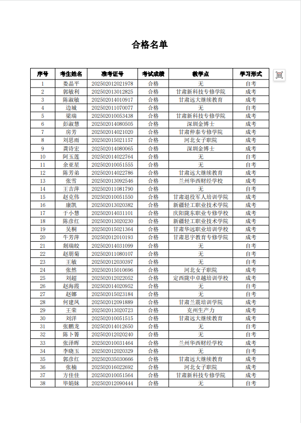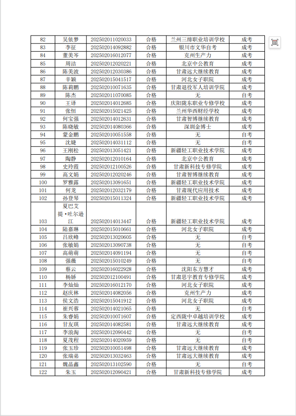 西北师范大学2025年下半年成人本科学生申请学士学位外语水平考试成绩已公布。考生即日起可登录2025年下半年成人本科学生学士学位外语水平考试报名系统(http://engnwnu.masterol.cn/testsystem/index)查询具体分数,后附合格名单。成绩合格的考生可直接在成绩查询系统内下载成绩单。【请尽快查询,过期后平台关闭将无法再查询成绩】