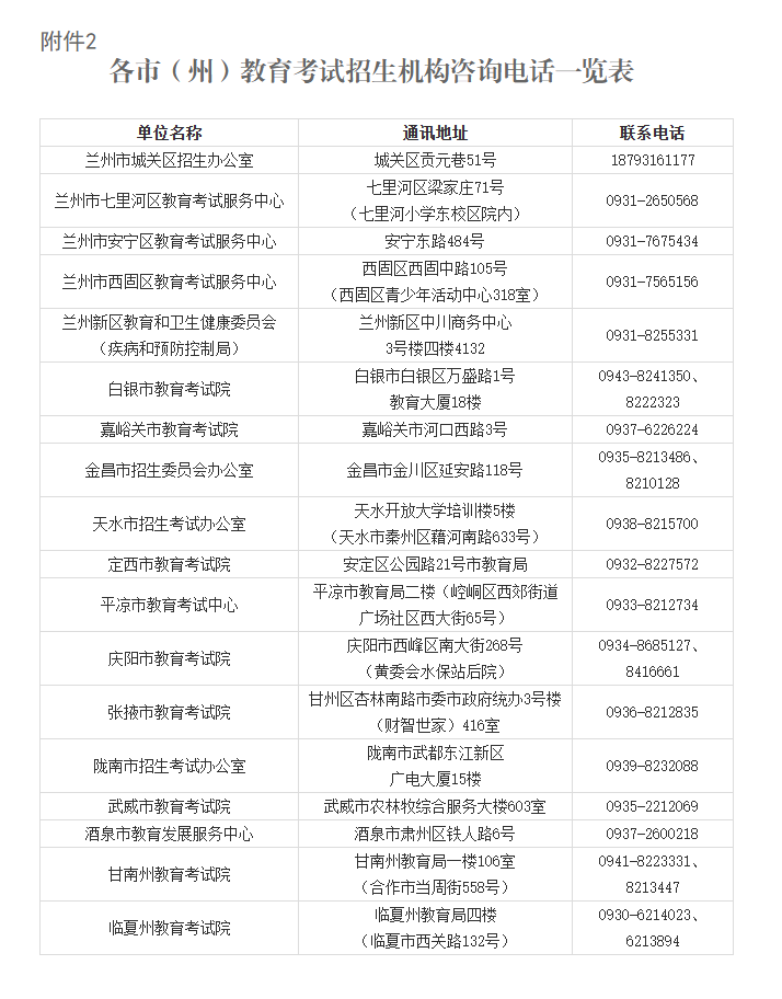 2.各市(州)教育考试招生机构咨询电话一览表