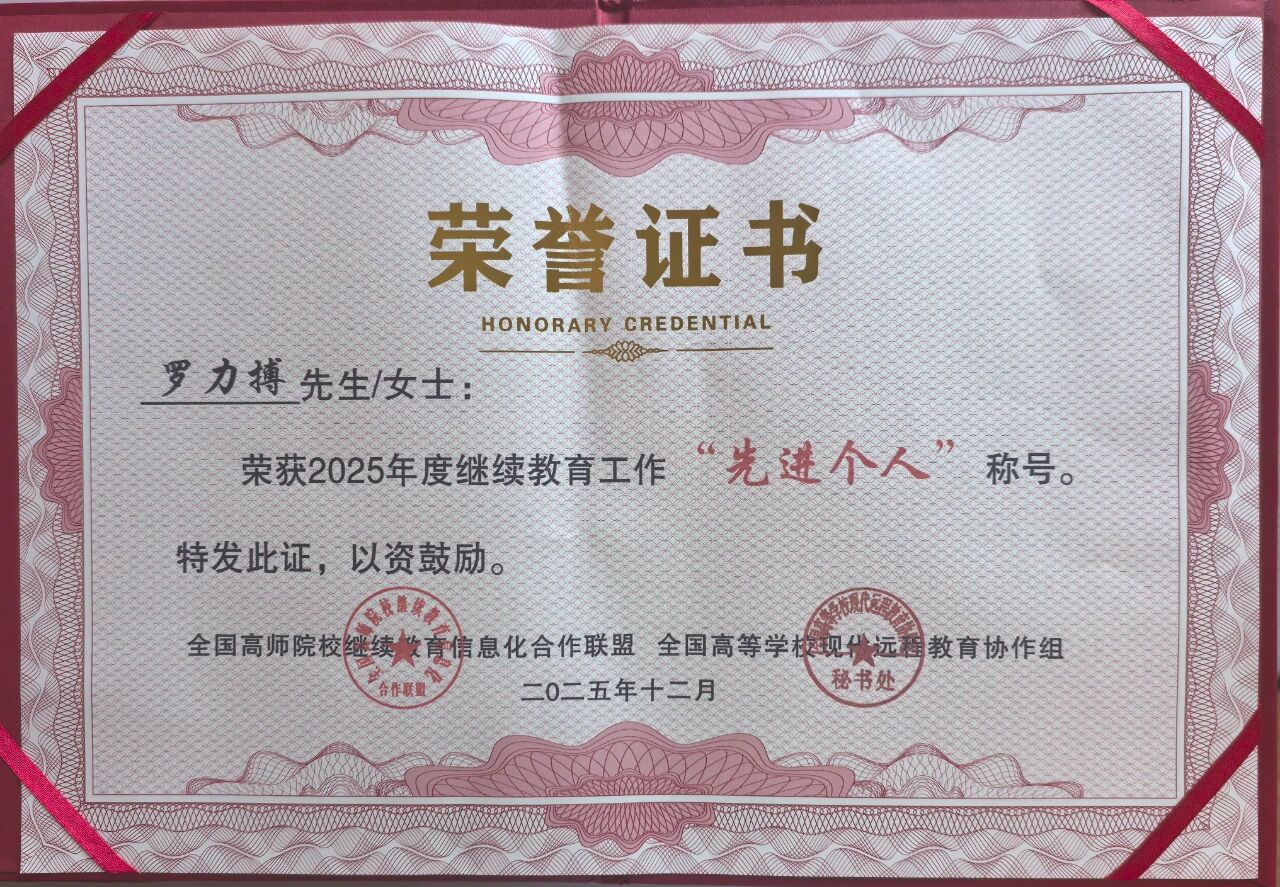 我院院长罗力搏荣获2025年度继续教育工作“先进个人”称号。