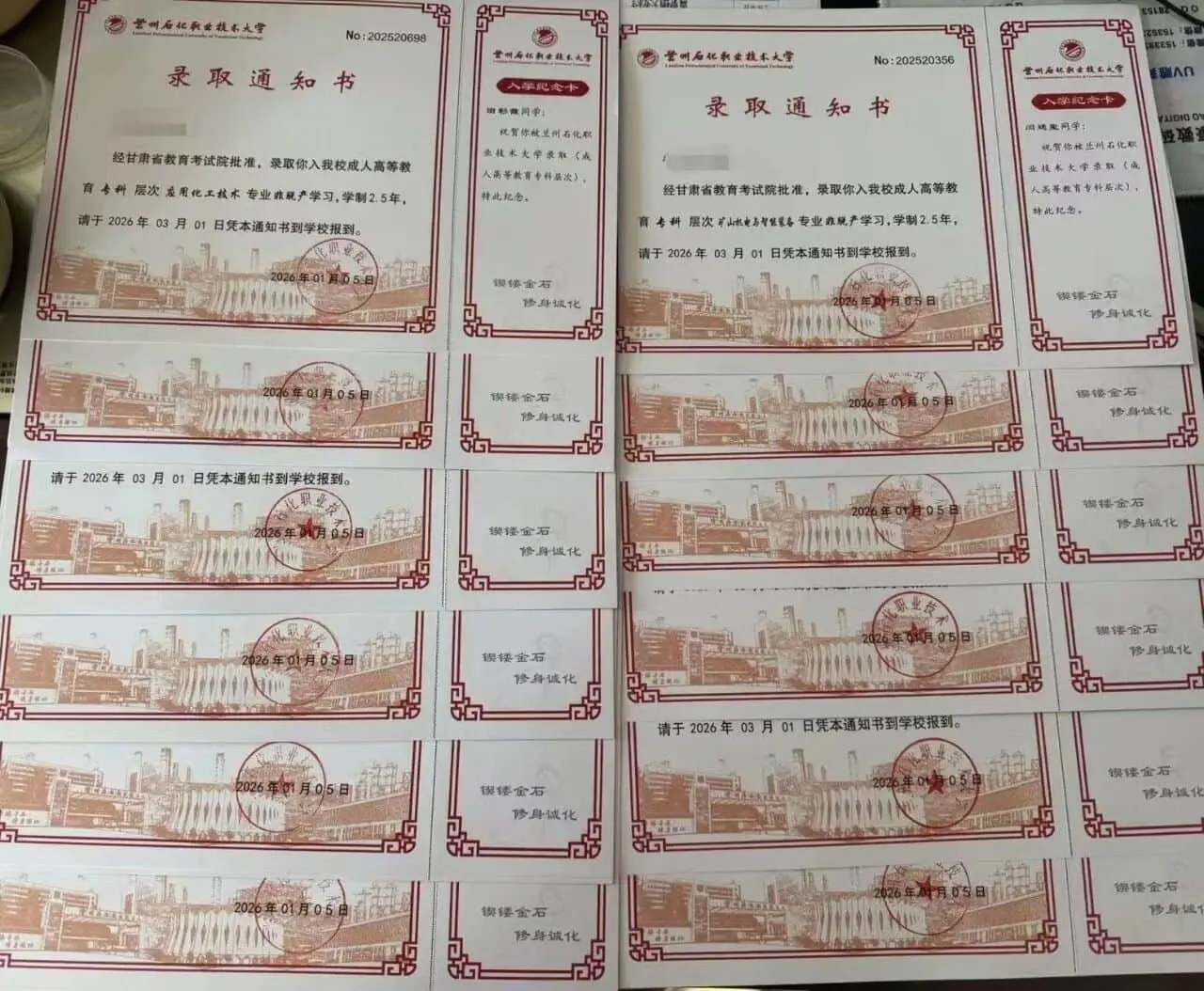 同学们,大家翘首以盼的录取通知书已由兰州石化职业技术大学送达我教学点,2026级新生报到工作正式启动。