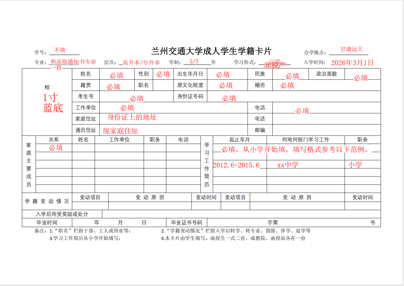 ⑤学籍卡2份。(打印出来手写)
