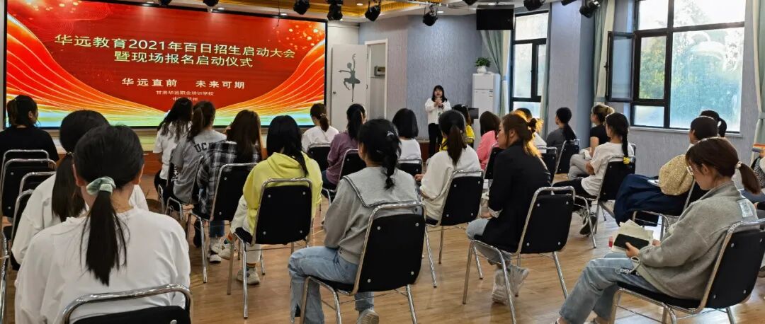 此次会议的主题为:华远教育2021百日招生启动大会暨现场报名启动仪式 —华远直前 未来可期。