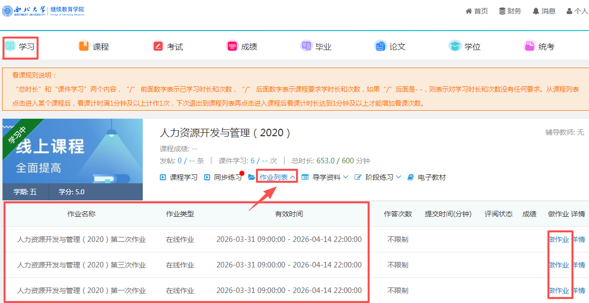 3.上传平台:西北大学成教学习平台(必须使用电脑登录)。