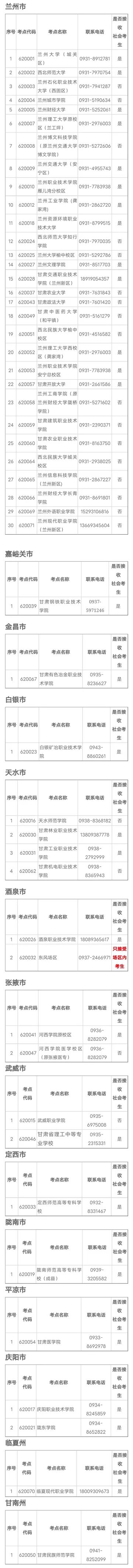 2024年3月甘肃省全国计算机等级考试考点一览表